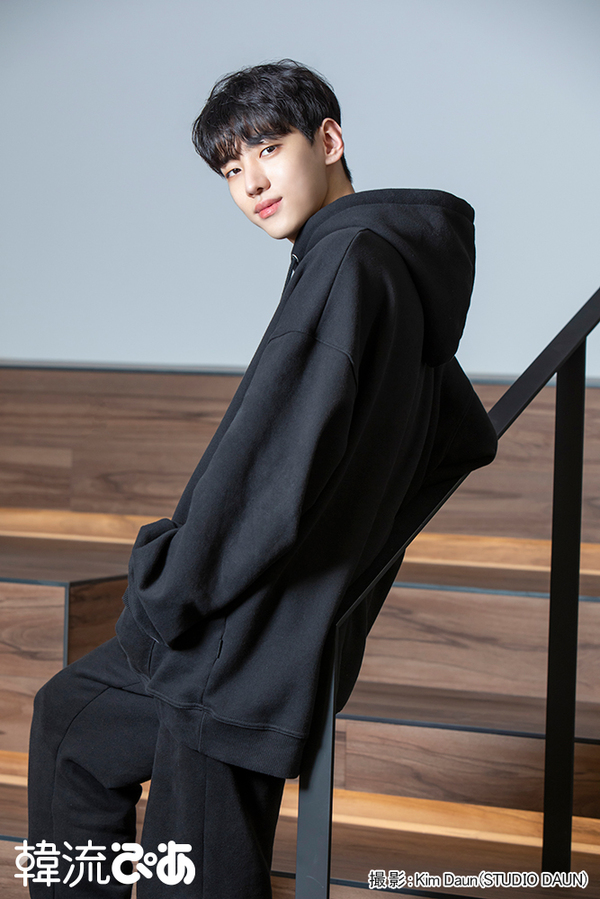 ちなみに、この日ジェチャンさんは、ブラックのスウェット上下というラフなスタイリングで現場に登場。偶然にもどこかサンウを思わせるカラーコーディネートでした! サンウは設定上いつも同じような服を着ていますが、ジェチャンさん自身はファッションに関心が高いそうで、「洋服が好きでいつもいろいろと見ています」とのこと。「ただ、どうしても普段よく身につけるのは楽な格好になっちゃうんですよね。なので、スタイリング自体は今日みたいなトレーニングパンツにフードパーカーみたいな組み合わせをすることが一番多い気がします」