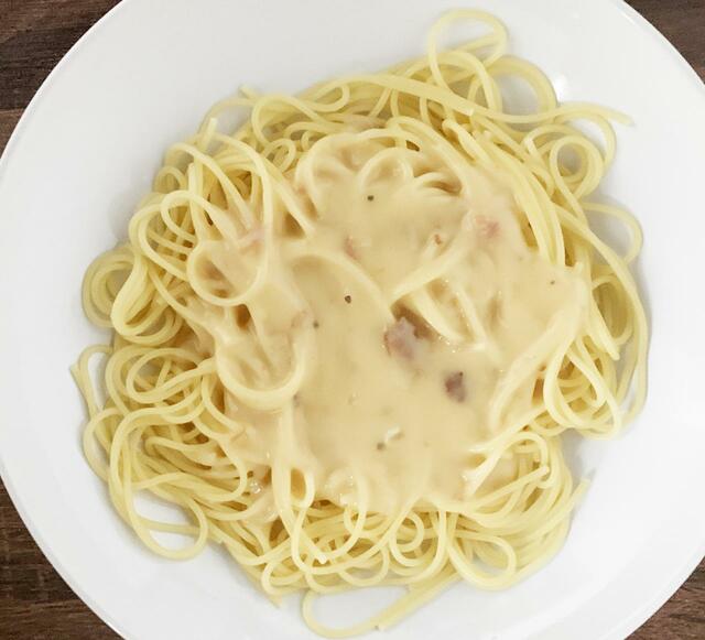 続いて、ローソンの「カルボナーラソース 2人前 260g」180円(税別)をいただきます。