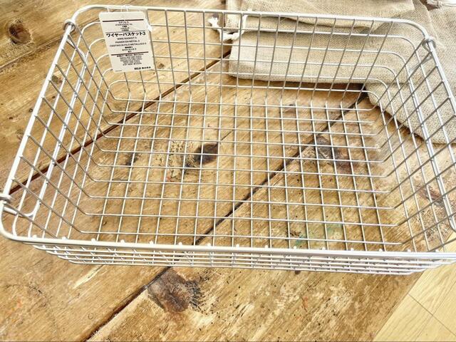 このバスケットの中に「ジュート野菜保存袋」を入れて収納すると、おしゃれに見えるし整理整頓した気分に(笑)