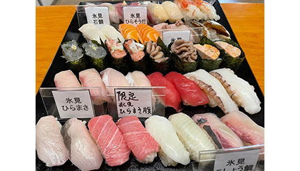 富山・茨城・大分港からの直送魚をはじめ約25種のにぎり寿司や、3~4種の総菜を食べ放題で提供する。店長の厳選した日本酒も飲み放題になる。