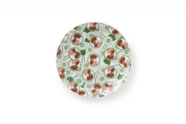 おなじみの鶏の絵柄を全面にデザインした、九谷焼の小皿。