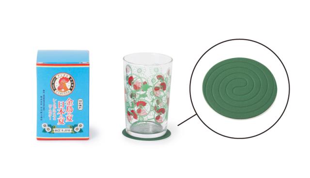 昭和30~40年代の日本の食卓を彩ったプリントグラスと、蚊取り線香がモチーフのコースターセット。贈り物にもよさそうです。