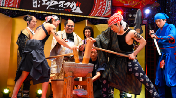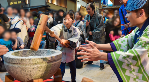 誰でも参加ができる『もちつき大会』は、4階の江戸舞台前で実施されます。