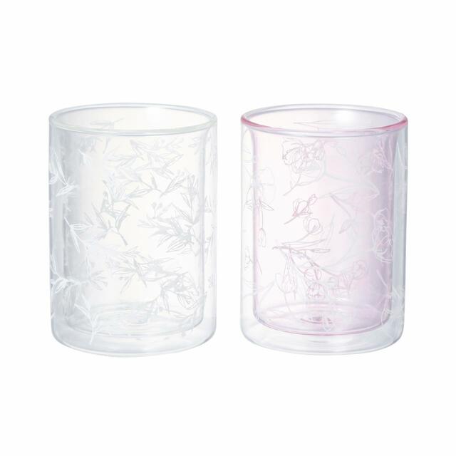 フラワーとリーフの柄がセットになったペアのダブルウォールグラスです。