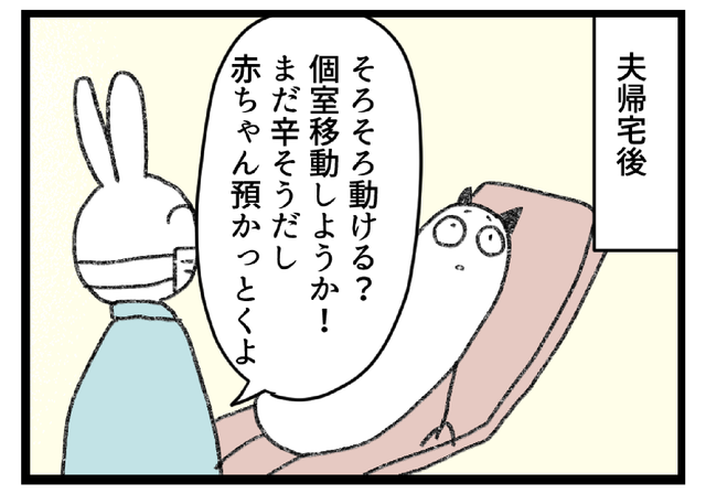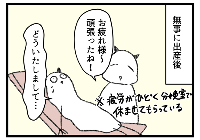 産んだ直後、疲労が激しく…。赤ちゃんを預かってもらい、分娩室でそのまま休ませてもらっていました。