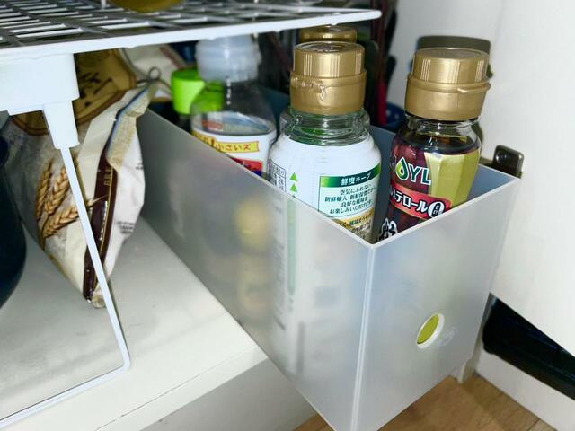 【書類ボックス】油など、少し背のある調味料入れにぴったり