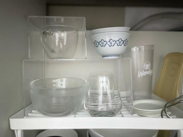 実際に並べてみると、なにより安定感が抜群。ガラス系の映えそうな食器を並べれば、見せる収納としても良いかもしれません。