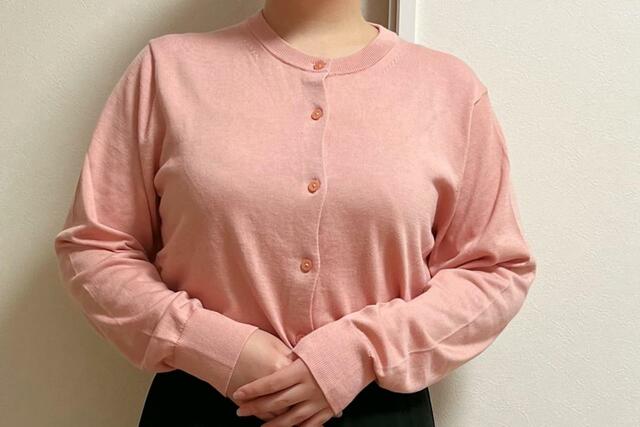 「UVカットクルーネックカーディガン(長袖)」は、いつも購入するサイズだと少しピタッとしたサイズ感で、特に腕周りが少しきつめに感じます。