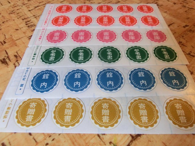 本のに貼られていた「寄贈品」「禁貸出」などのマークシール。旧字体や渋いカラーからか威厳、いや、威圧感さえ感じます。