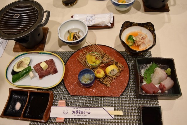 人気の懐石料理には、海の物を始め、『おおいた豊後牛』も提供されます。