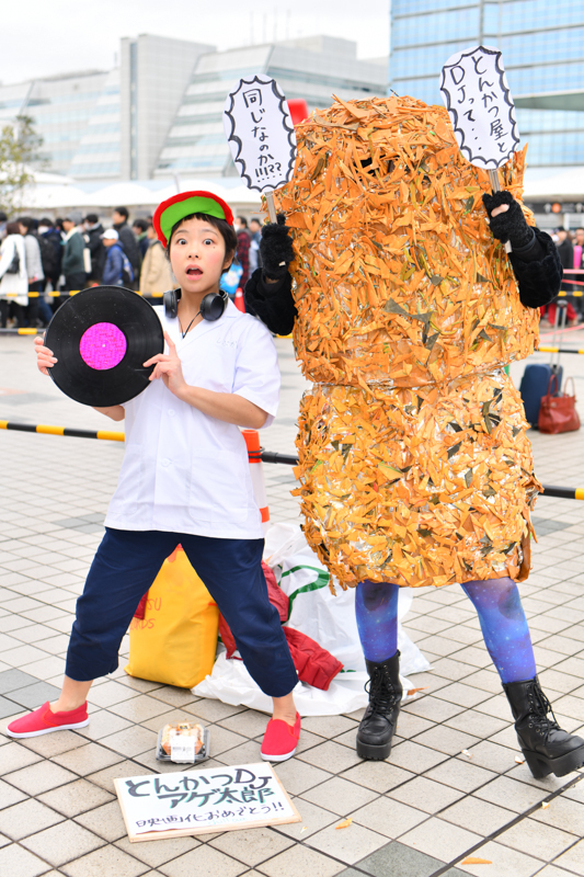 アニメ化&実写化の作品『とんかつDJアゲ太郎』のコスプレでは、主人公の揚太郎とともに等身大のとんかつも登場。衣表現が見事です…!