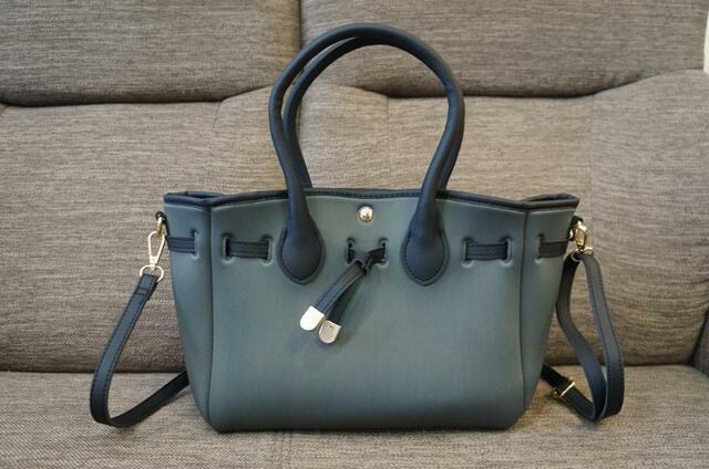 パッと見だと高級感の漂うおしゃれバッグなのですが、素材はポリエステルと発砲ウレタンの「ウェットスーツ風素材」で、素材自体は意外とカジュアル。でもこのウェットスーツ風の生地はメリットがあるんです。