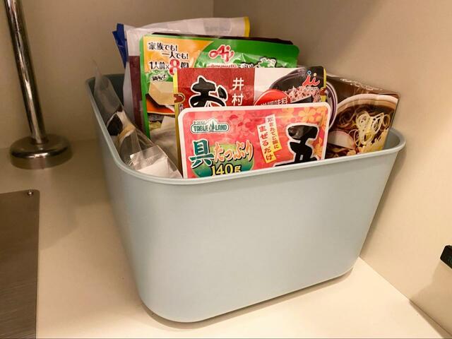 筆者はキッチン下の乾き物収納に使ってみました。フタを開けて使ってもいいし、フタを閉めて重ねて使ってもOK!使い方は無限大です。