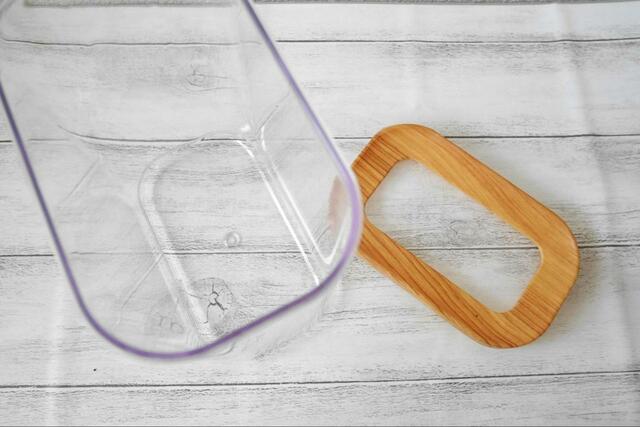 フタのふちが木目調で、どんなインテリアにも馴染むナチュラルなデザインです。