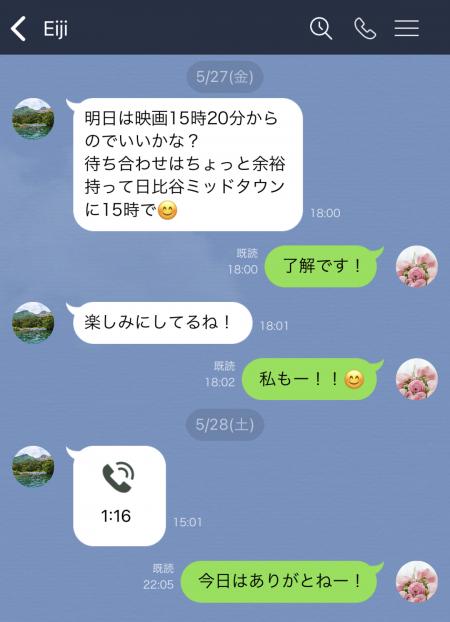 デート当日もとても楽しくて、夜食事まで一緒に過ごして解散。