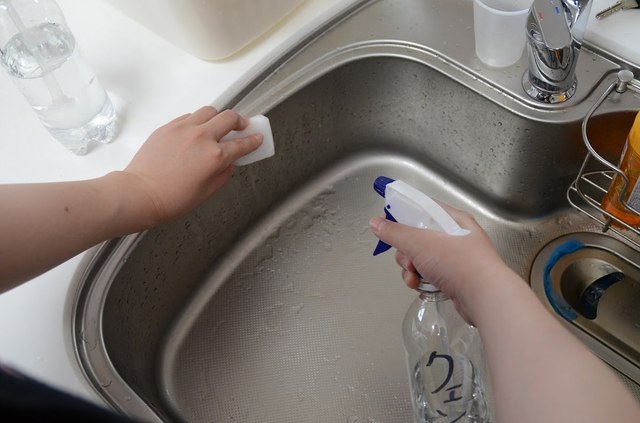 シンクはクエン酸スプレーとメラミンスポンジでピカピカに!