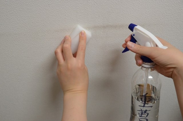 壁の汚れは重曹スプレーを振りかけてメラミンスポンジでこすると綺麗になります。ただし強くこすり過ぎると壁紙が削れてしまうので注意しましょう。