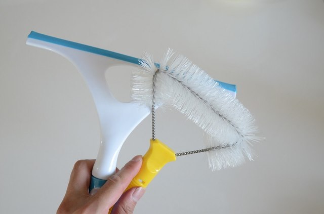 スクイージーはいくつか種類がありますが、慣れないうちは余分な力が入ってしまうので、一番ゴムの柔らかいものを選んでおいた方が良いかもしれません。網戸ブラシは何でもOKです。当然、どちらも100円です。