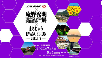 「JALPAK X 庵野秀明展 X まちじゅうEVANGELION」はジャルパックの旅行商品となり、6月13日に発売した。山口県央連携都市圏域(山口市、宇部市、萩市、防府市、美祢市、山陽小野田市、島根県津和野町)の協力のもと、アニメ映画『シン・エヴァンゲリオン劇場版』のモデル地の一つとなった宇部市を中心に山口県内を巡ることができる。ツアー限定のオリジナルグッズや、7月8日~9月4日に宇部市で開催される「まちじゅうEVANGELION第2弾」企画、山口県立美術館で開催される「庵野秀明展」なども楽しめる。日程など詳細は、特設サイトで公開している。