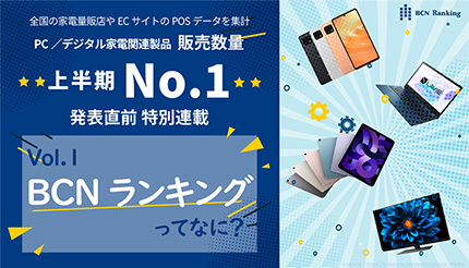 「BCNランキング」は全国の家電量販店やECサイトから日次で収集したPOSデータをもとに作成されるデータベース。「実際に販売された数と金額」が正確に分かり、「売れている」の信憑性が高い。対象は約150品目にのぼり、それぞれのカテゴリーで人気のメーカーや製品を正しく知ることができる。新聞や雑誌、テレビなどのメディアでもしばしば引用されている。