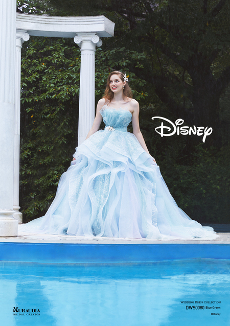 水面のように揺らめくスカートフリルや、 貝殻をイメージした胸元のフリルデザインで、『リトル・マーメイド』の世界観を、余すところなく表現しています。