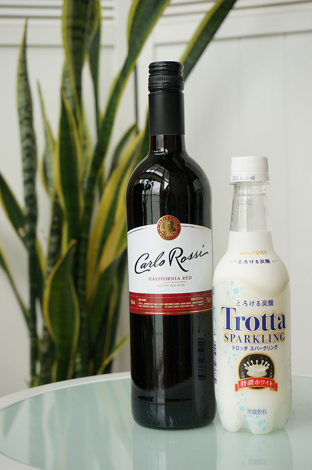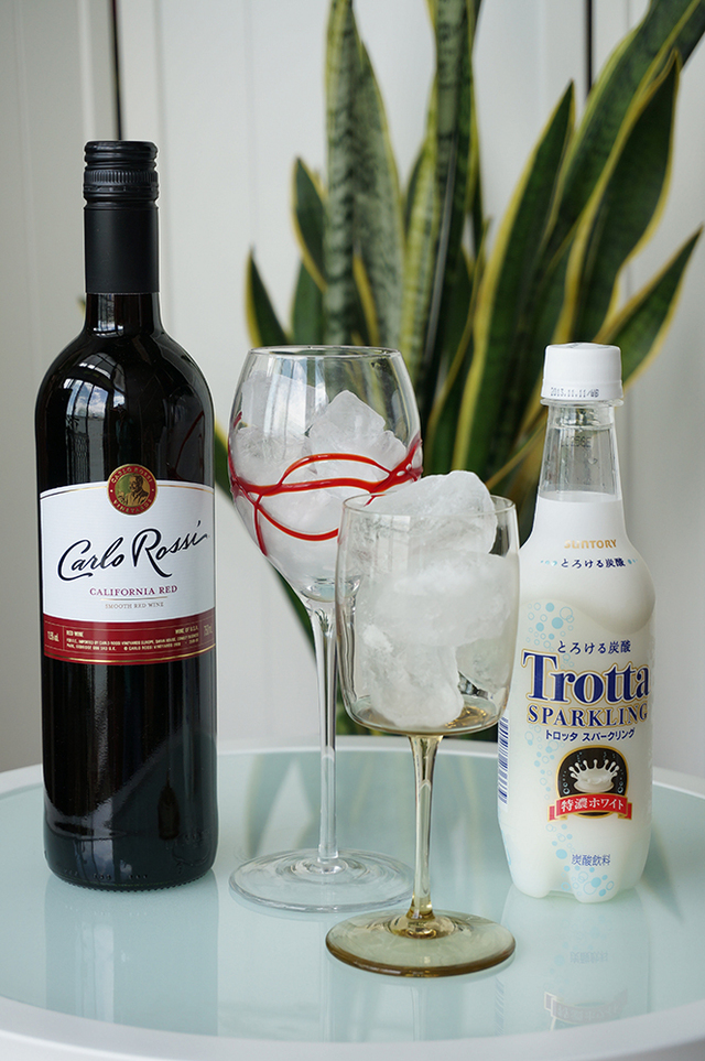 ホワイトとレッド、2層の美しいワインカクテルです。ミルキーさを楽しんでみてくださいね。