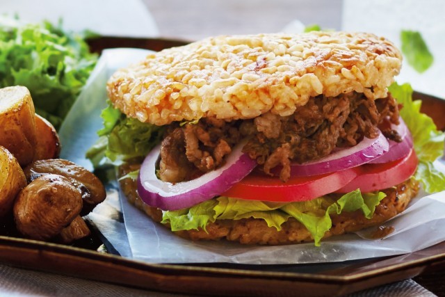 『お肉』コースでは、「プレミアム 隆之国和牛 ライスバーガー(4個入)」と「鹿児島黒毛和牛・黒豚・桜島どり 鹿児島ならでは!が味わえるぜいたく3種焼肉セット」。