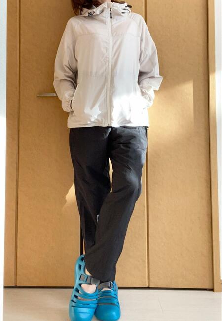 ウェアはモノトーンでシンプルにしつつ、足元にカラーを持ってきたのがポイント。プチプラに見えないようなカラーを選んでみました。