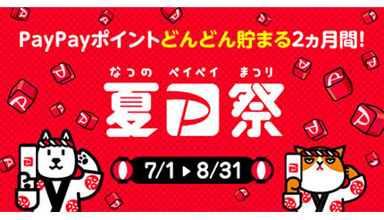 PayPay、ヤフー、ソフトバンクは、全国のPayPay加盟店とオンラインショップでお得に買い物ができる「夏の超PayPay祭」を7月1日~8月31日に開催する。