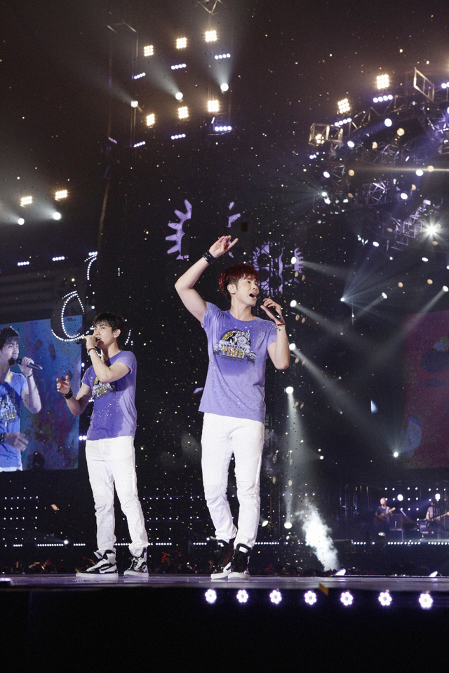 ラスト曲『In Our Time』では、会場が一体となって大合唱。そして、客席のペンライトが赤からパステルブルーに一変し、「TIME」の文字が赤く浮かびあった。このファンのサプライズにふたりは感激。ユンホは目を潤ませ、「皆さんの温かい目と熱いハートで胸がいっぱい。紆余曲折があったけど、温かい応援で今の東方神起があります」と感謝し、「東方神起のステージは勇気、希望を伝えるために存ります。東方神起のメンバーになって、皆さんに会えて本当によかった」。チャンミンは「皆さんのおかげで幸せでした。頑張って、ドームでのライブの数を増やしていけたら」とさらなる飛躍を誓った。さらに、ダブル・アンコールにも応えたふたりは、何ものにも代えがたい最高の“TIME”を噛み締めていた。