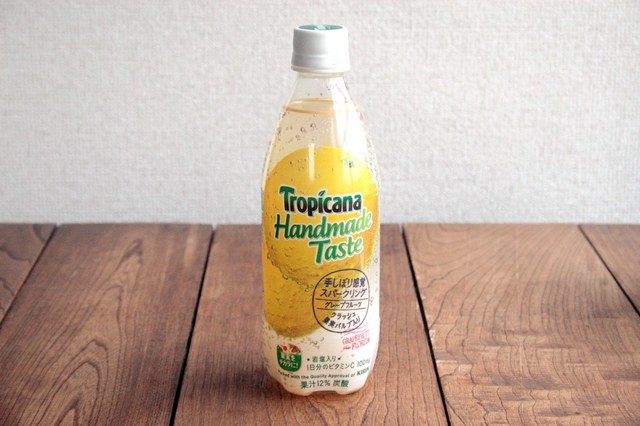 「トロピカーナ ハンドメイドテイスト 手しぼり感覚スパークリング グレープフルーツ」はキリンから500ml入りで好評発売中。