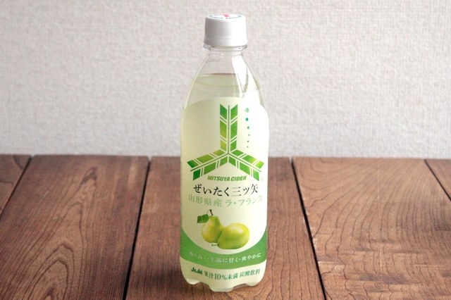 2つ目は、アサヒが展開する「三ツ矢サイダー」から、こだわりの国産果汁を使ったプレミアムシリーズ「ぜいたく三ツ矢」の第一弾「ぜいたく三ツ矢 山形県産ラ・フランス」のご紹介。