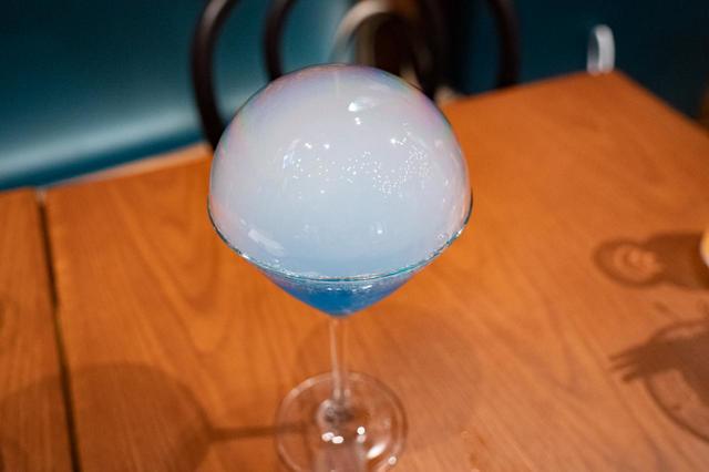 大きな泡がノンアルコールカクテルの上にのった状態で提供。