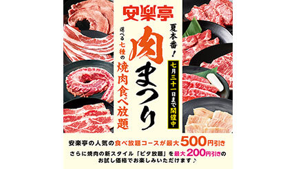 安楽亭、「夏本番!焼肉食べ放題『肉』祭り!」の開催期間を7月31日まで延長