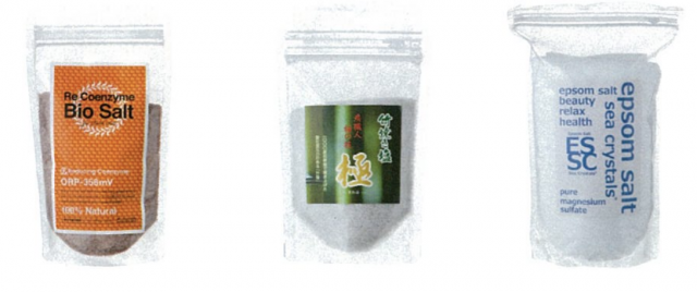 (写真左から)リ・コエンザイム スパソルト (リリアン)、竹焼き塩 「極」 (グローリー・インターナショナル)、エプソムソルト(ヒロセ)