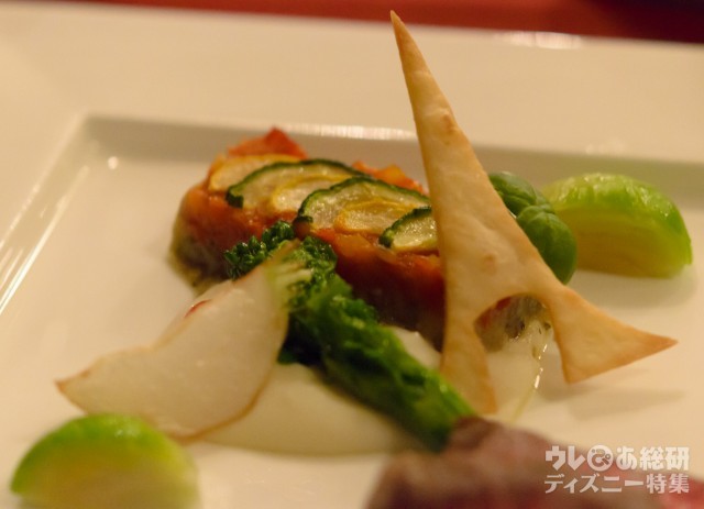 「マゼランズ」レミーのスペシャルコース:黒毛和牛のロースト、ヴァンルージュソース、ラタトゥイユ添え|東京ディズニーシー「ピクサー・プレイタイム」2018年 ©Disney / Pixar