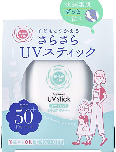 1歳から使えるものが多く、このUVスティックもその一つです。SPF50+/PA++++でウォータープルーフ。しかも、石けんで落とすことが可能です。