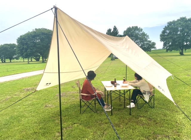 実際にタープの中に入って座ってみると、日差しを防いでくれるうえに、一気に秘密基地感がでてワクワクします。