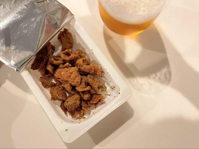 ポテチのようなザクッと感はそこまで際立ちませんが、程よいパリッと感と食べ応え満点の肉厚さは、さすが骨つきチキンを製造している会社の商品だと感心させられます。
