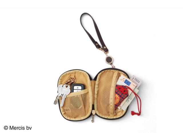 家、車、自転車など、形も用途も違うかぎをまとめて収納できるミニウォレットです。楽しくお出かけできるように、お花のイラストとミッフィーのかわいいポーズをセレクトしています。