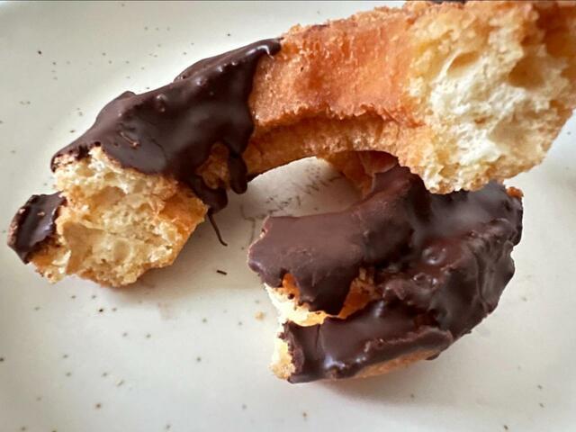 コーティングに使用されているチョコレートは、ドーナツとの相性抜群で、チョコレートのかかっている部分だけ食べてしまいたいほどおいしいです。