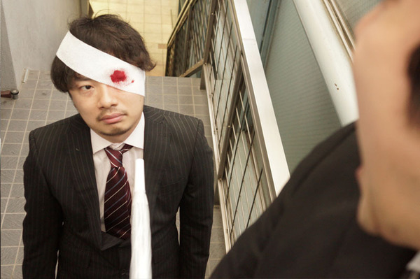 5.包帯と血のりで、傘の先で大怪我したことを装いビビらせる。