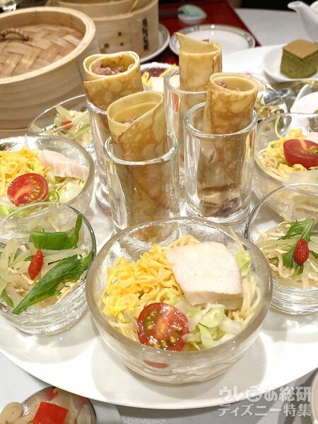 メニューの撮影をしていると、大皿にのった色とりどりのお料理と、ミッキーマークの付いたせいろがどんどん運ばれてきました。