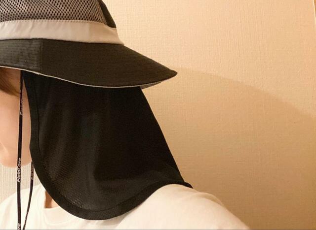 先ほど紹介したメッシュサファリハットに付けると、首元までしっかりと保護できます。