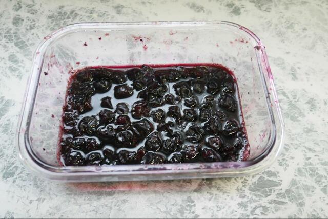 1.耐熱容器に冷凍ブルーベリーと砂糖を入れ、500Wの電子レンジで1分30秒加熱。