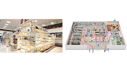 さらに、プロジェクターやデジタルサイネージを活用することで、ダイナミックで顧客の注目を集める映像を演出し、リアル店舗でしか得られない顧客体験と空間デザインといった新たな付加価値を提供していく。また、照明の色を自在にコントロール可能な調色LED照明によって、季節や時間帯、店舗レイアウトに合わせて最適な照明空間を提供し、顧客の購買行動に変化をもたらし、より快適な購買環境の実現を支援する。