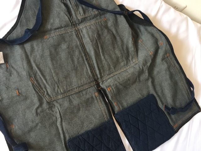 また、ひざ部分の裏側には着脱式の鍋敷きが付属しているのも便利。こんなエプロン見たことない!