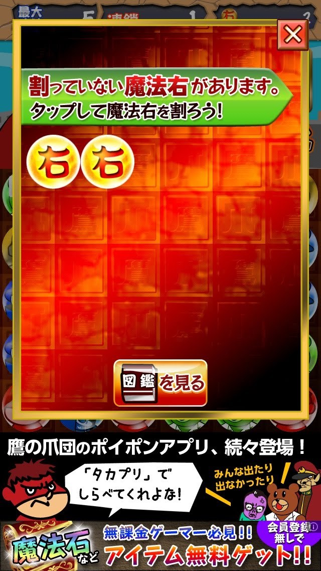 ひとつだけゲーム的要素があるとすれば、「右」と書いてある石。これは「魔法右」と言って、他の石と一緒に消すと、レアアイテムがゲットできるんです。