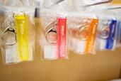 バッグに広げた状態のサンプルも置かれており、サイズやデザインを実際に確認できます。