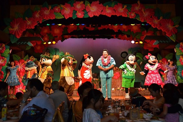 ショーの準備ができるまで、キャラクターたちが各テーブルを回ります。ミッキー、ミニー、リロ&スティッチ、チップ&デール全員と、写真撮影ができます。